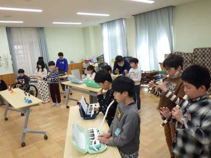 南支部の行事「おわかれ会」が行われました。前半は、オンラインで6年生の紹介がありました。後半は、大藪小学校のみんなと一緒にどんじゃんけんをしたり、「また会える日まで」を歌ったりしました。出し物では、久世西小学校は「きらきら星」の合奏、大藪小学校は「じゃがじゃがじゃがいもなにになる?」の発表をしました。メダルわたしでは、6年生へ手作りのメダルを渡しました。6年生は、一緒に過ごしてきた仲間へ温かいメッセージを送ってくれました。