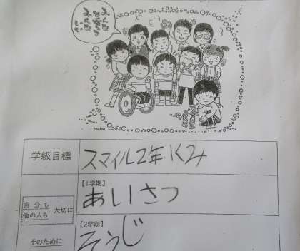2年生の学年目標「スマイル2年生」についても振り返りました。「やさしく」「なかよく」「1年生のお手本」「かっこよく」「たすける」「笑顔」6つの目標は、どれも達成度が高く、みんな「3年生もがんばるぞ」という気持ちになりました。