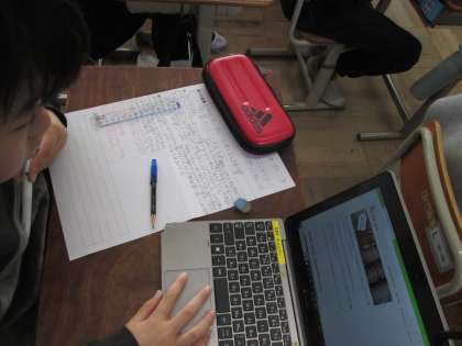 大気汚染の原因、海洋汚染が進むと起こることなど、自分の興味のあるテーマについて意欲的に調べる姿が見られました。