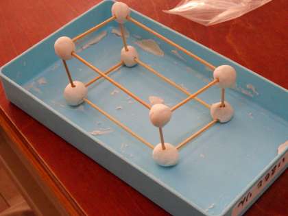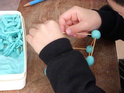 竹ひごと粘土玉を使って、はこの形作りに挑戦しました。