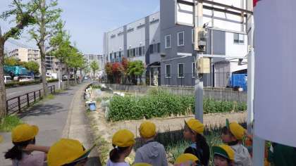 学校を出てすぐそばには、畑が広がっていました。
