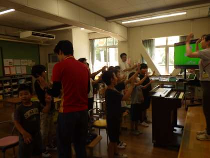 音楽の学習で、「ちゃつみ」の歌に合わせて