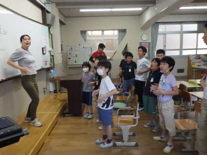 足踏みしたり、ポーズをきめたり、歌を口ずさみながら