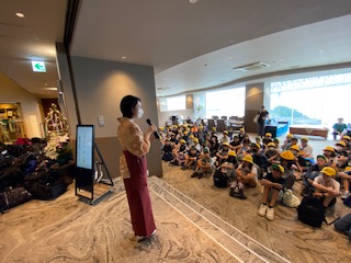 出発式が終わりました。これから千畳敷を前に学年写真を撮ります。
