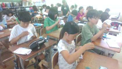 初めて裁縫をする子どもがほとんどです。針に糸を通すことから初めて、玉結び、玉どめ、なみぬい、本返しぬい、半返しぬい、かがりぬいなどをしています。どんどん子どもたちの手つきが安定してきて、上達が早いです!