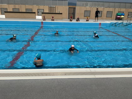 後ろ歩きをしたり、伏し浮きの練習をしたり、