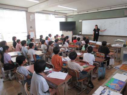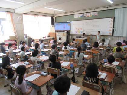 子どもたちは夏休みの出来事を友だちと話したり、