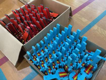今週から、スポーツDAYで披露するよさこいの練習を始めました。今年は鳴子を使って踊りを披露します。