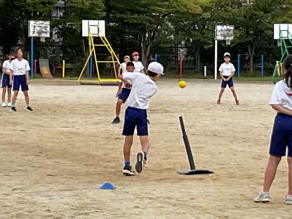 フライが上がった時にうまくキャッチできると周りの友達から「ナイス」という声や拍手が起こっていました。