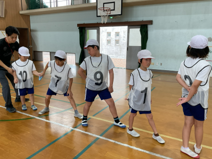 体育科の学習で、バトンパスの練習をしました。