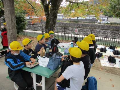 グループに分かれて昼食