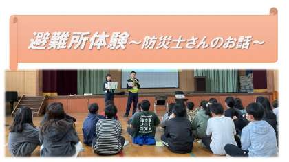 総合的な学習の時間で学んでいる「防災」についてお話を聞いたり、体験したりしました。