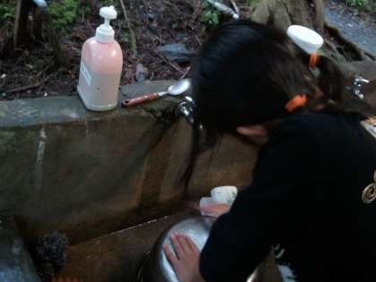 おいしいカレーを食べた後は、みんなで後片付けです。