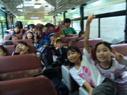 車内でこどもたちは、楽しかった活動や、大変だったことなどを話しています。