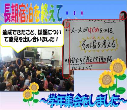 長期宿泊をふり返り、4泊5日の経験から学んだことを話し合いました。