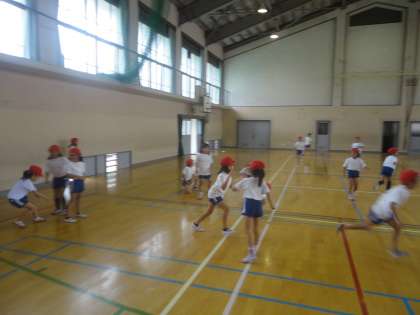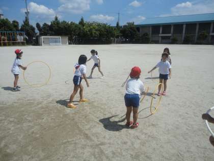 体育の学習で「おにあそび・ようぐあそび」をしています。おにごっこが大好きな子どもたちなので,「こおりおに」や「色おに」,「増えおに」や「手つなぎおに」などいろいろなおにごっこを楽しみました。ようぐあそびではフラフープやボールを使って遊びました。フラフープはやはり腰で回すのが主流のようです。上手な子はほとんど腰を動かさない状態で,フラフープを回していました。中には膝で回す子も…。やはり子供は「遊びのプロ」だなとつくづく思います。