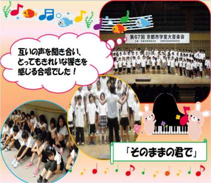 全体合唱の「京都市歌」が終わり、各学校の発表が始まりました。