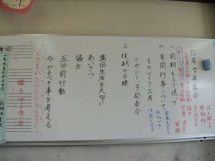 また,課題についても考え,「あいさつ」「整列」「自分で考えて行動する」などが出てきました。