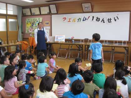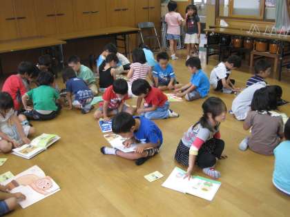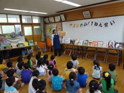 一年生を題材にした絵本や,ダジャレの絵本,心が温まる本など,様々なジャンルの本を紹介してくださったので,子どもたちも興味津津で聴いていました。読み聞かせの間,子どもたちは笑ったり,お話の展開に驚いたり,様々な表情をしていました。