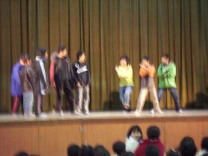 今日の児童朝会は,まず給食委員会からのお知らせです。食べ物を好き嫌いしているお友達がいます。でも好き嫌いをしていると健康な体になれません。そのわけを教えてもらったお友達は,これからは何でも食べようと決心します。みんなにわかりやすく劇の形で知らせてくれました。