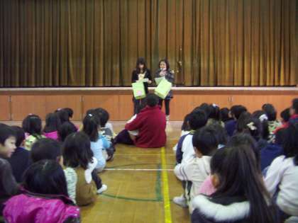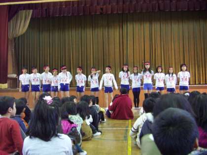 昨日行われた「大文字駅伝」に出た子どもたちの報告会もありました。今までがんばってきたこととその成果,5年生は来年またがんばってほしいということを話してくれました。全校児童からは選手たちに温かい拍手が送られました。