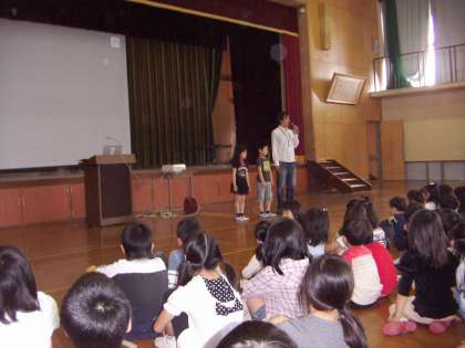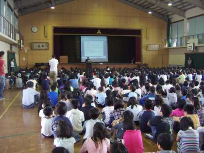 続いて校長先生のお話です。ちょっとむずかしい憲法の話を,プレゼンテーションを使ったりしてわかりやすく話されました。例えば「チューリップの歌」を例に♪どの花見てもきれいだな♪ みんなだれでも輝いているよというようなお話でした。(でも低学年にはちょっとむずかしかったかな。)また,各学級でわかりやすく担任がお話しています。