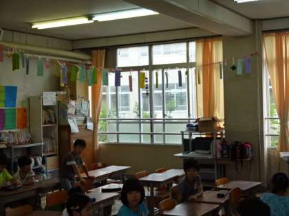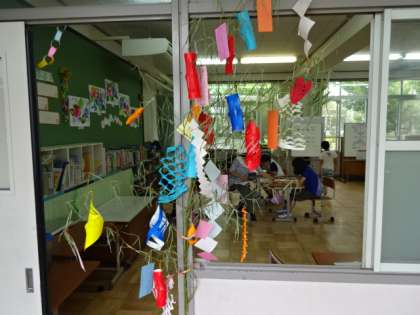 7日は七夕でした。各学年各クラス,いろいろな所に子どもたちの願いが書いてある短冊がつるされています。昨日はあいにくの天気で星空は見えませんでしたが,子どもたちの願いが叶いますように…。