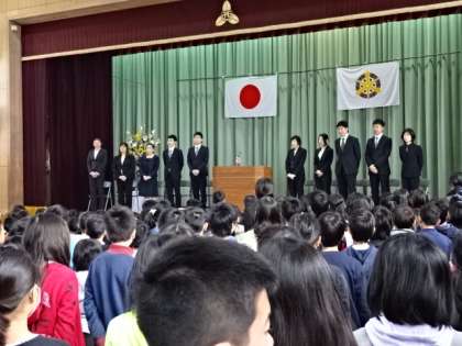 着任式では今年来られた11名の教職員の方々をお迎えしました。