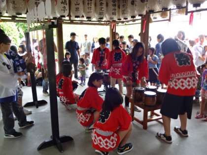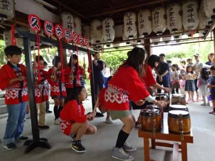 5月8日(日),校区の綾戸國中神社の祭礼があり,六斎クラブの6年生が参加しました。今年度初めての人の前での発表です。子どもたちは多くの観客の前で練習してきた成果を発表しました。まだまだうまくできない部分もありますが,これからの練習でより完成度を高めていきたいと思います。
