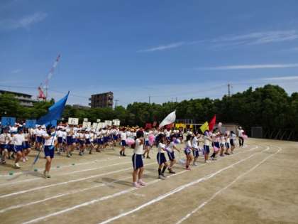 4日の運動会に向けて,1日(水)に1回目の全校練習を行いました。この日は開閉会式の練習やエール交換,応援練習をしました。第1回目だったので,最初はきびきびした動きができなかったり,声が出なかったりしましたが,応援練習が始まるころには声もしっかりと出るようになり,いい練習となりました。本番は最初からもっときびきびと動けるように声かけをしていきたいと思います。