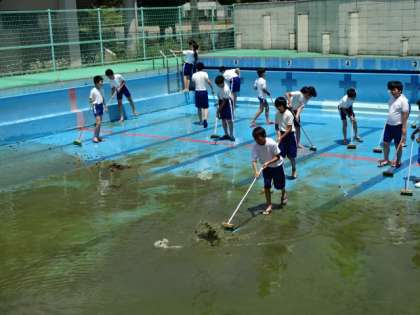 6月10日(金)にプール掃除を行いました。天気にも恵まれ,水の中に入ったり,水を浴びたりすることが気持ちよく,子どもたちは一生懸命に,そして楽しそうに取り組みました。最初は泥や汚れがひどかったプールも,6年生の力でピカピカに。15日から低学年の水遊びが始まり,20日からは中高学年の水泳学習も始まります。他学年の子どもたちもきれいになったプールを見て,プール学習を待ち遠しそうにしていました。