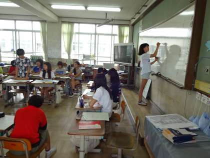今日の討論のテーマは「冬用の体操服は必要か」。クラスを肯定派・否定派に分け,グループで相談しながら意見をぶつけ合います。ただ,目指すゴールは相手を負かすことではなく,話し合いに折り合いをつけてよりよい答えを見つけていくことです。司会・記録・板書も子どもたちで役割分担し,司会が話合いをコントロールしていきます。久世西校では,昨年度から話合い活動にも力を入れています。今後も国語科だけでなく特別活動や他教科の中でも話合い活動を充実させていきたいと思います。