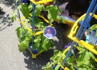 4月から一生懸命水やりをして,大切に育てたあさがお。