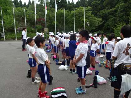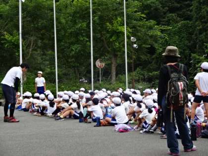 3日目になり,少し気の緩みが出てきていたところでの「檄」。全員で山の家での久世西小の目標をもう一度叫んで確認して,40分遅れで午後の活動に向かいました。