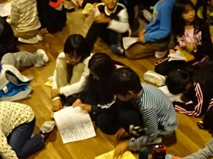 今日も最後は反省会。個人で一日を振り返り,班で一日を振り返り,全体で一日を振り返り,最後は各係のオールリーダーで一日を振り返り。最終日に向けてしっかりと自分たちを見つめなおしました。