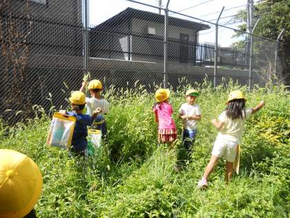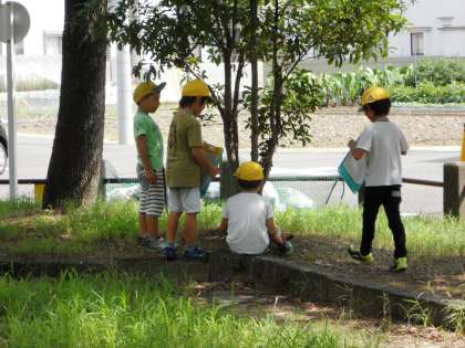 公園に着くと,友だちと一緒に草むらを覗いたり,高い木を見上げながらあちこち探し回ります。