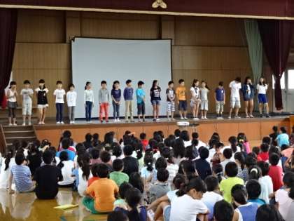 12日(月),児童朝会がありました。今月の全校合唱は「Best Friend」。きれいな声でゆったりと歌うことを心がけて歌っていました。
