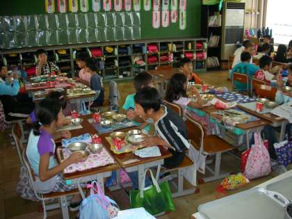 給食当番は6年生がしてくれました。さすがに6年,てきぱきと配膳してくれます。あっという間に「いただきます」。