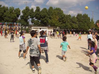給食の後はたてわり遊び。グループ毎にドッジボールや,おにごっこなど楽しみました。1年生を上手に立てて遊んでくれた6年生に感謝です。