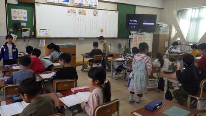 ちょうど、生活科でにこにこ大作戦について学習していたので、イメージしやすかったようです。子どもたちはとても積極的に交流をしていました。