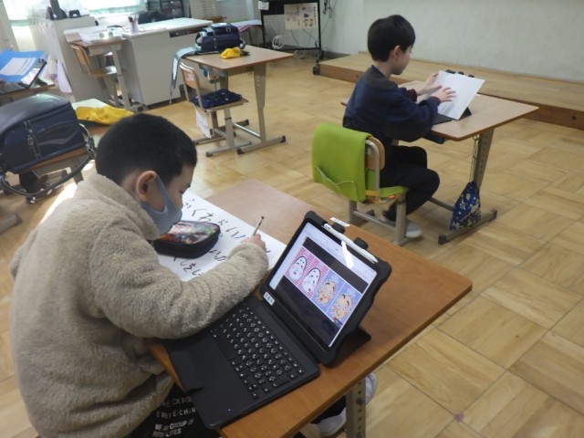 6年生は自分の思いを伝えるための原稿を考えたりしています。
