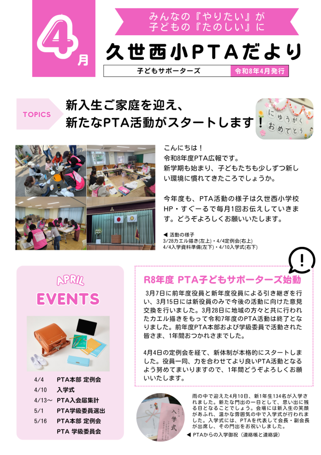 4月のPTAだよりです。