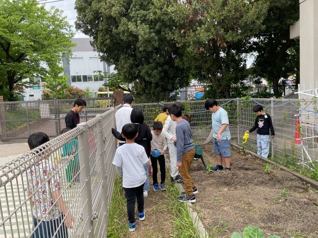 新学期が始まって最初の月が過ぎようとしています。さくら学級も新しいメンバーを迎えて毎日頑張っています。8時45分になれば、3組教室に全員集まり、朝の会をします。今日の予定の確認や健康観察をします。その後、テレビをみて花壇で育てているなす・きゅうり・ピーマンの水やりをします。1年生もこのリズムにずいぶん慣れてきました。この繰り返しが子どもたちの力になっていくことを願っています。