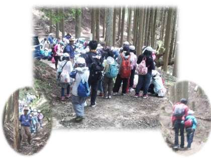 天狗杉登山です。大人でもしんどい山道に心折れそうになりながらも,友達と励まし合いながらチャレンジしています。今日のめあては「挑戦」。まさに自分の限界に挑戦です。この登山を乗り越えて,自信と友情を深めてくれることと思います。