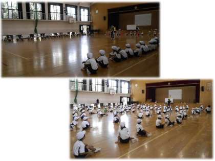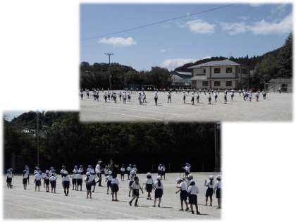 1年生は,グランドで団体競技の練習を,2年生は体育館で団体演技の練習です。少しずつ形ができてきています。移動場所や,整列の仕方などなど確認しながら取組を進めています。
