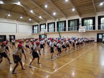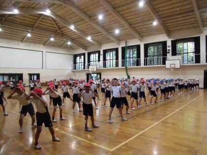 3年生は「バンブー大作戦!」(棒引き)の前に短いダンスを踊ります。昨日は2回目の練習でしたが,子どもたちはこちらがびっくりするくらいよく覚えていて,どんどん上達していきます。少し速いリズムに合わせるのが難しいですが,楽しみながら練習しています!