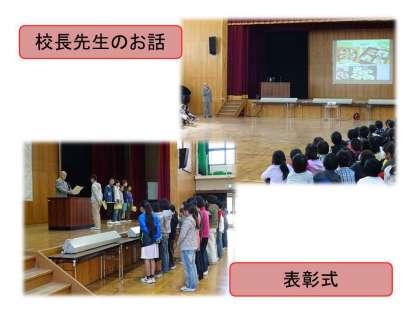 最後にこれまでの,陸上競技会や図工作品,2日に行われた支部駅伝交歓会,大文字駅伝予選会の表彰式を行いました。前に出た子どもたちはとてもよい表情で表彰を受けていました。