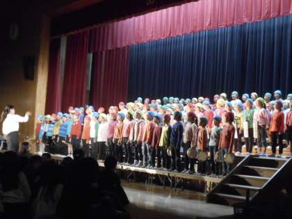 音楽で学習した曲を中心に,踊りやバンブーダンスを織り交ぜながら合奏や合唱を発表しました。