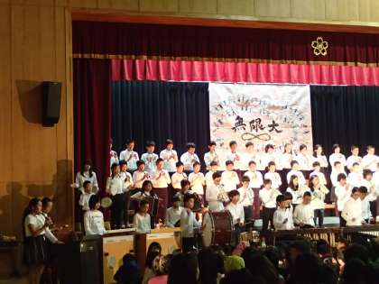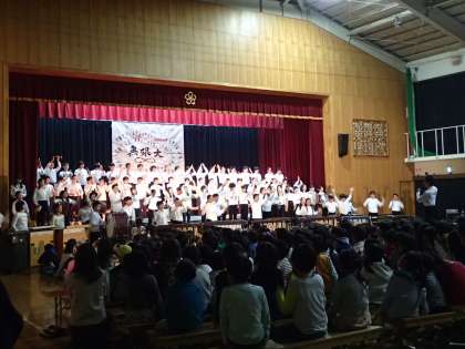 さすが6年生。大変美しい歌声,心を一つにした合奏。一瞬一瞬にまとまりを感じさせる発表はまさに学習発表会のスローガン「一致団結」そのものでした。