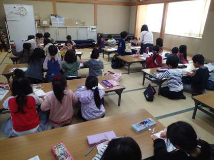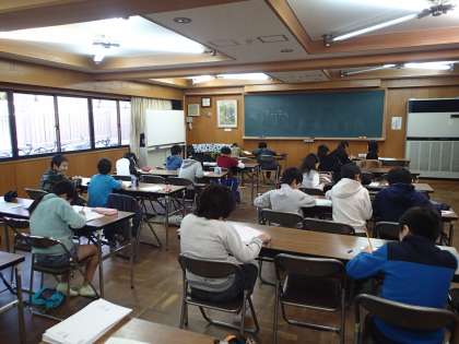 今日は土曜学習。6年生は学童大音楽会で不在でしたが1年生から5年生までの児童が集まって,漢字やかなづかいの学習に取り組みました。